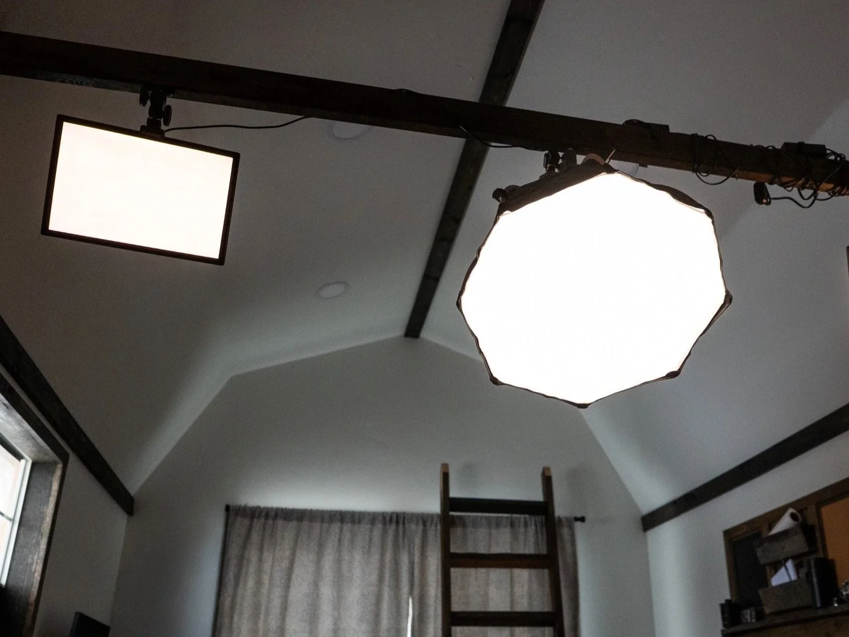 • Studio lighting and audio setup